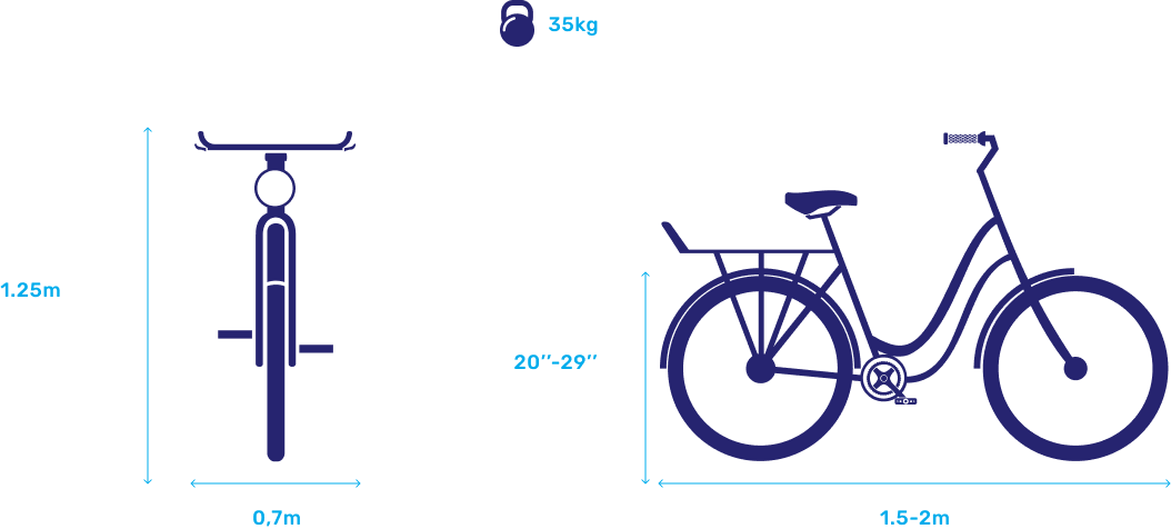 מידות אופניים שניתן להכניס לתא החניה: